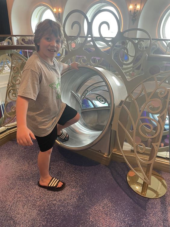 Disney’s Oceaneer Club & Disney’s Oceaneer Lab are for the 3-12 year age group. In these two clubs, kids can play in one of the themed play areas (Andy’s Room & Star Wars Command Post, Pixie Hallow, and Marvel Super Hero Academy) or go enjoy one of the many opportunities of crafting, dress up or technology. There are supervised activities planned throughout the day as well. Kids get to check in to the club via a twisty slide! It is really neat.