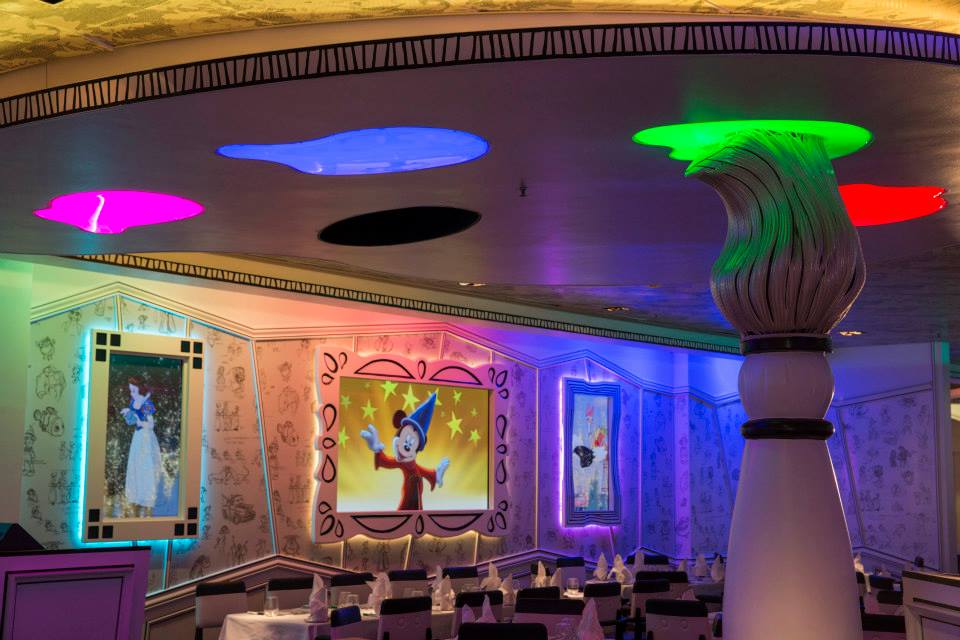 Animator’s Palate is a staple on all four cruise ships. I don’t want to spoil what happens while you dine here, but let’s just say this is the most magical dining venue onboard. This dinner has a diverse menu.