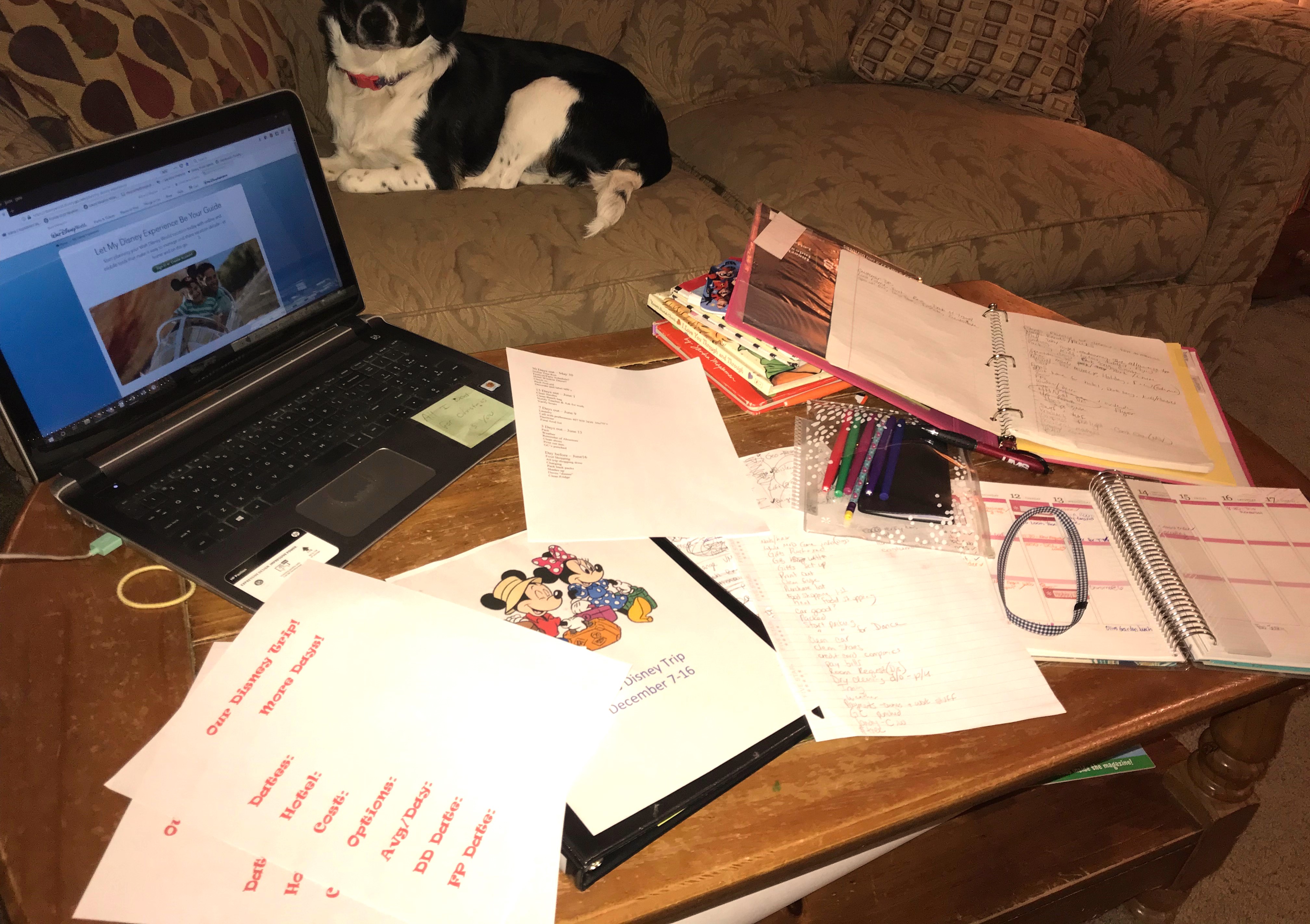 is what my table looks like when I am planning a trip to Disney – Land or Sea! Regular family planner, vacation planner, current vacation binder, compilation of ‘old vacations’ binder and all my fancy colored pens. Not pictured is my CRAZY spreadsheet for times & reservations. It looks like a lot and to some it may be, but not for me. I LOVE to plan and I love to prepare. No vacation – Disney or otherwise, is perfect, but you can prepare and plan to make it as wonderful and stress-free as possible.