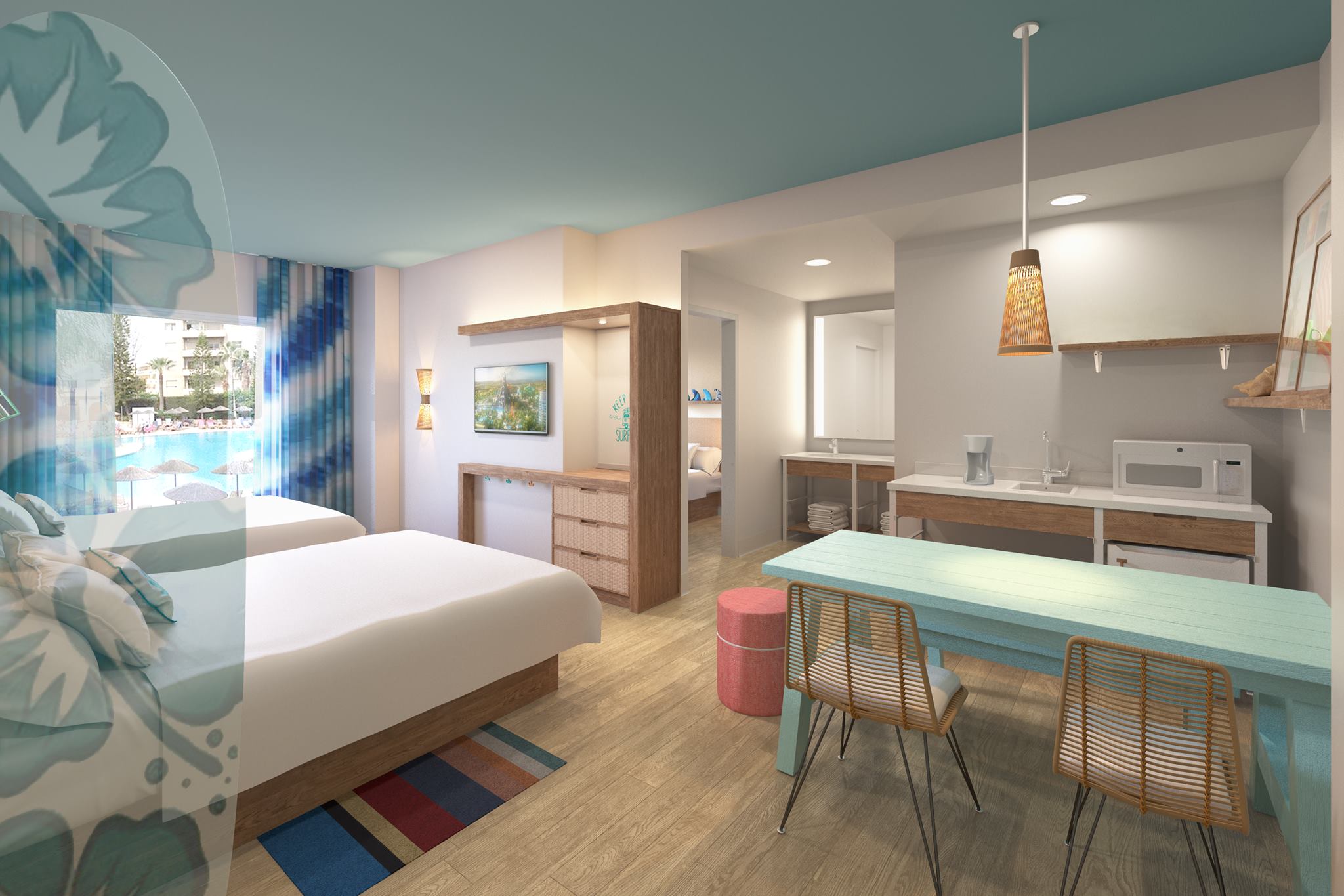 Both hotels will have standard rooms sleeping up to 4 as well as suites that will sleep up to 6 in a 2-bedroom layout and offers a kitchenette. Rates are as low as $85/night.